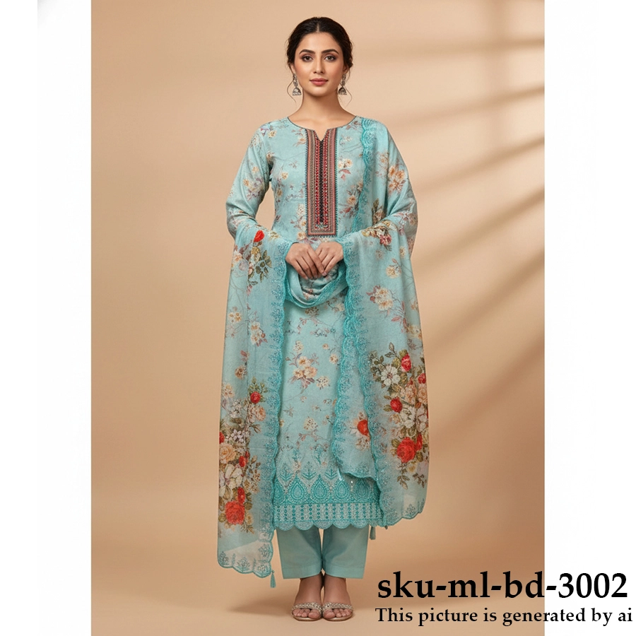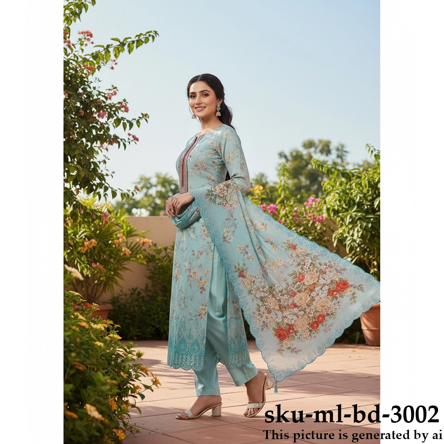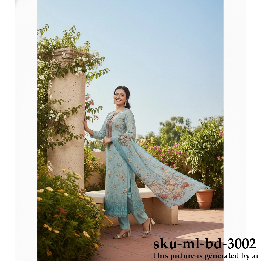 হলো একদম elegant এবং classy look-এর perfect combination। Cambridge Blue রঙের এই premium lawn three-piece তোমার style-এ আনবে এক fresh touch of sophistication।