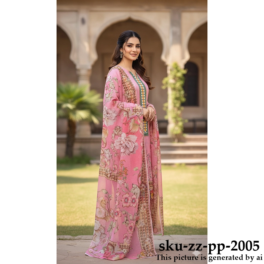 Zamzam Premium Plus Quality  Charm Pink Tree Lawn Collection – Three Piece Set