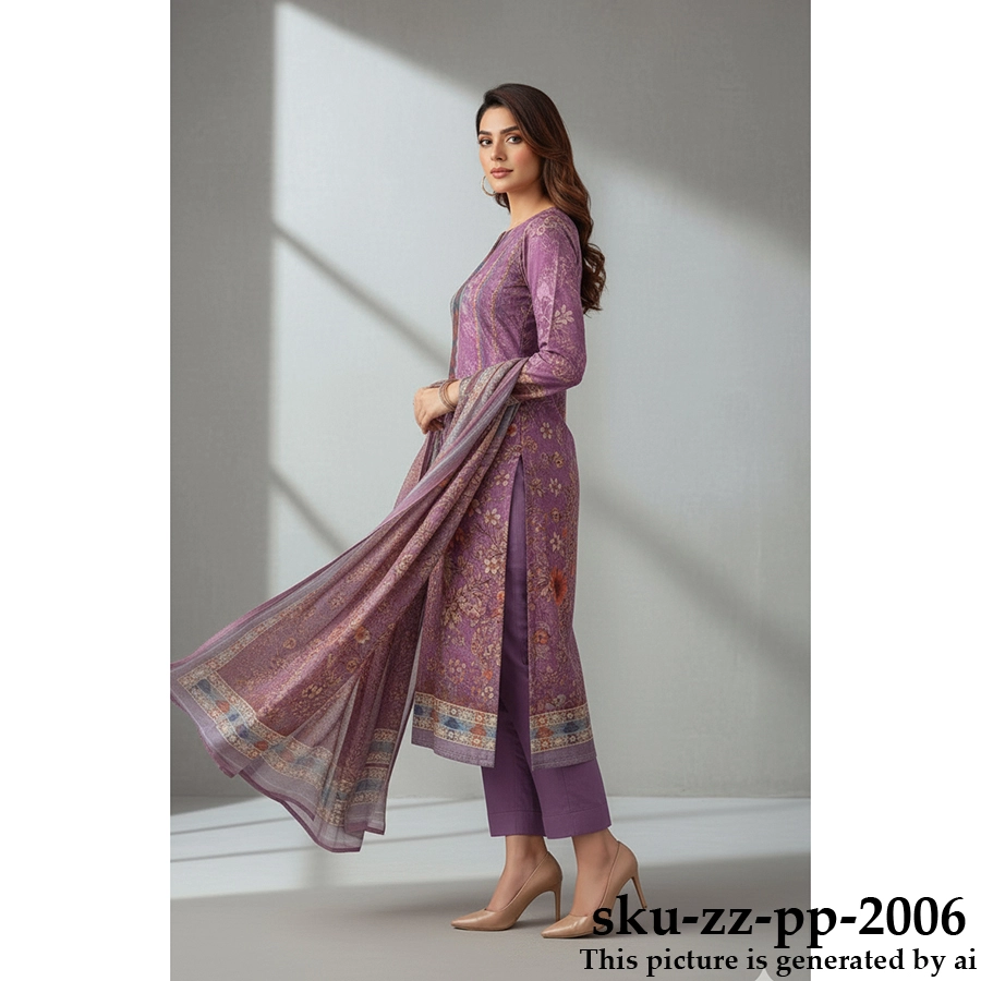 Zamzam Premium Plus Quality  Puce  Tree Lawn Collection – Three Piece Set