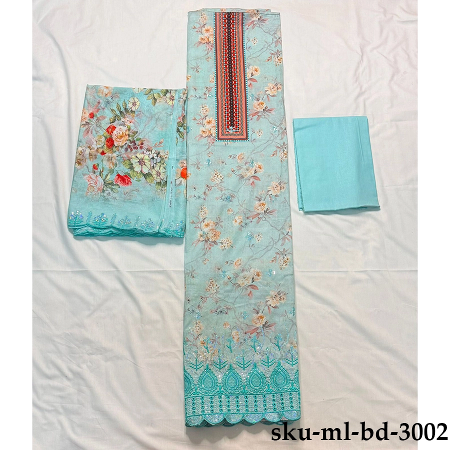 হলো একদম elegant এবং classy look-এর perfect combination। Cambridge Blue রঙের এই premium lawn three-piece তোমার style-এ আনবে এক fresh touch of sophistication।