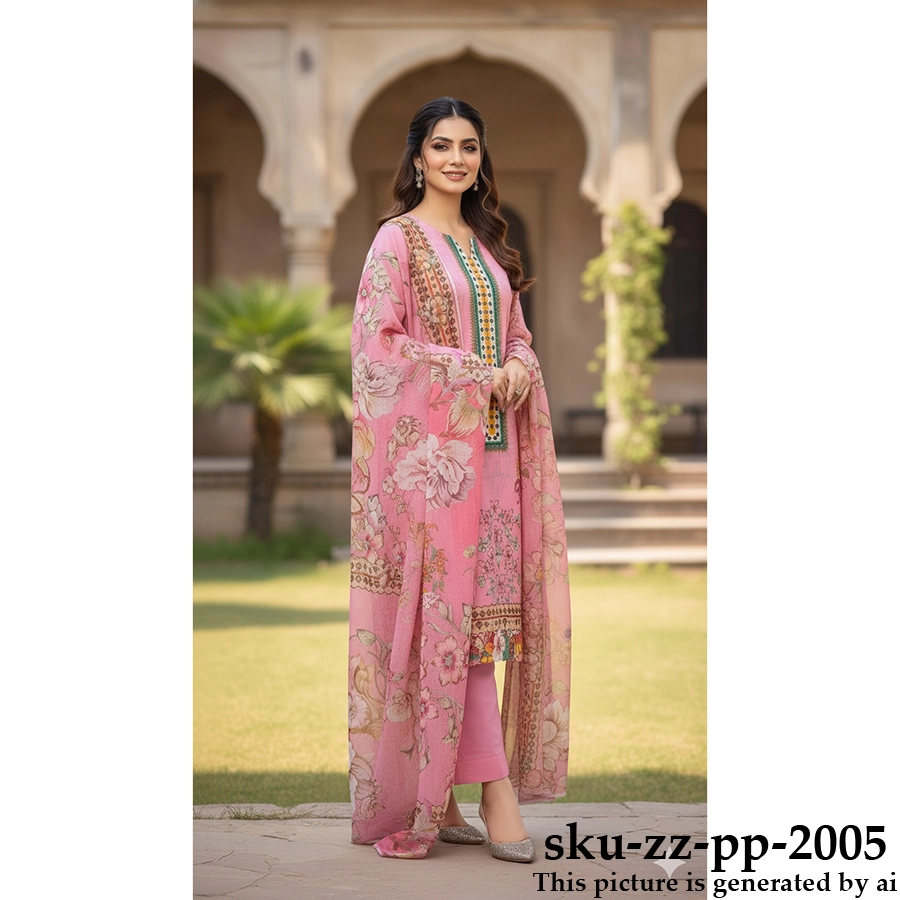 Zamzam Premium Plus Quality  Charm Pink Tree Lawn Collection – Three Piece Set