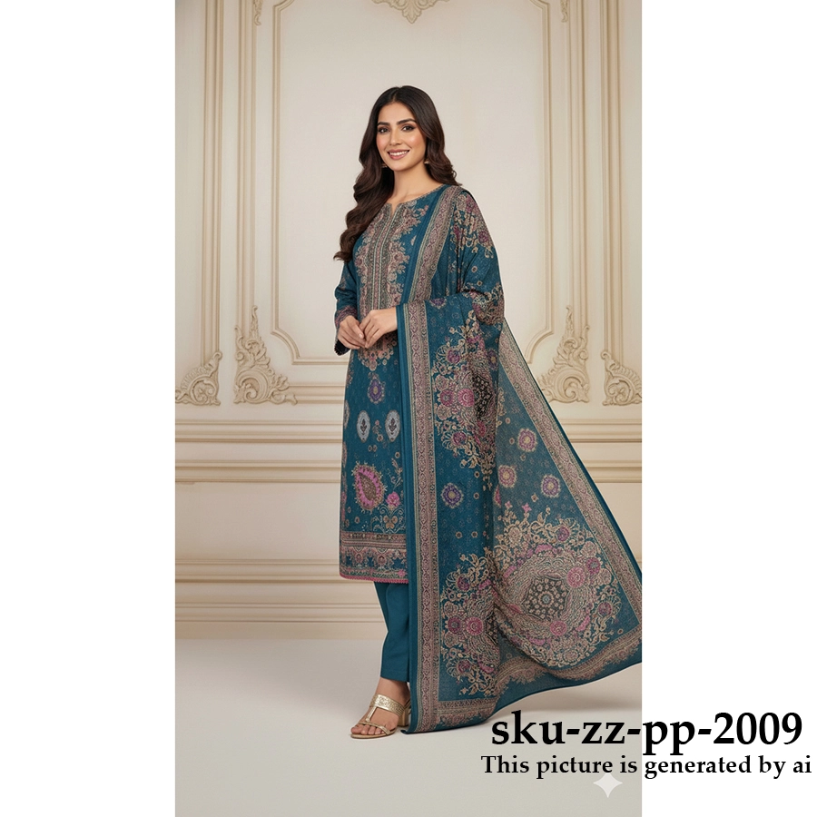 Zamzam Premium Plus Quality Jelly Bean Blue Tree Lawn Collection – Three Piece Set