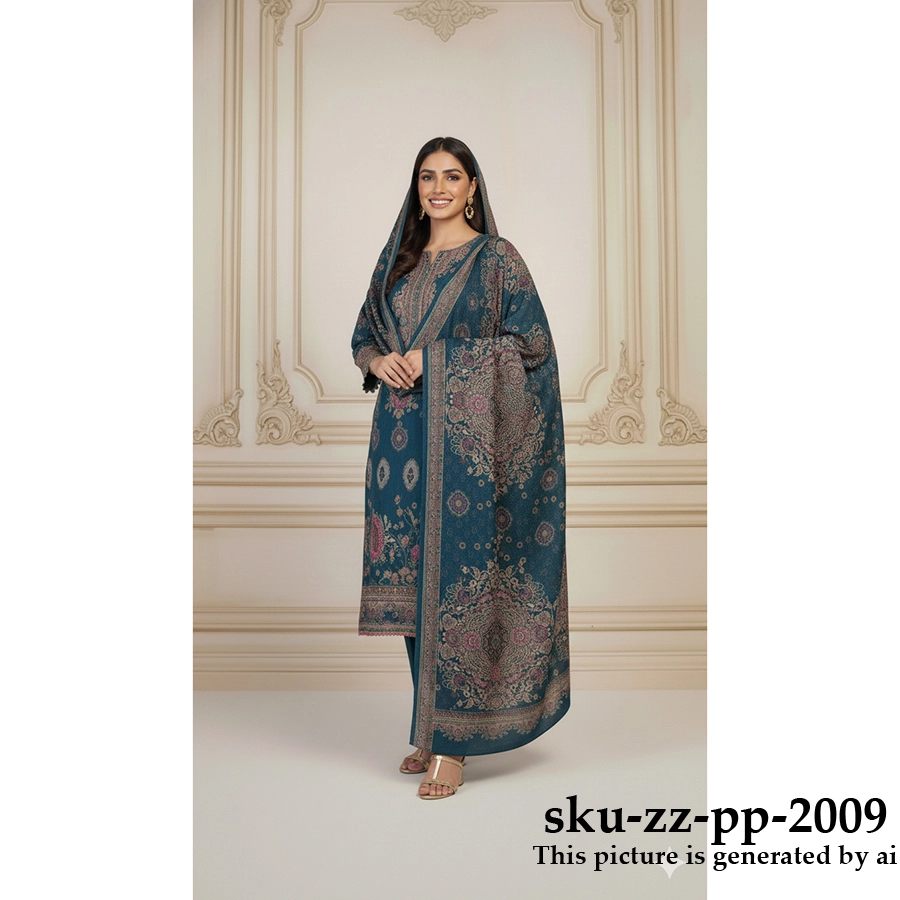 Zamzam Premium Plus Quality  Jelly Bean Blue Tree Lawn Collection – Three Piece Set